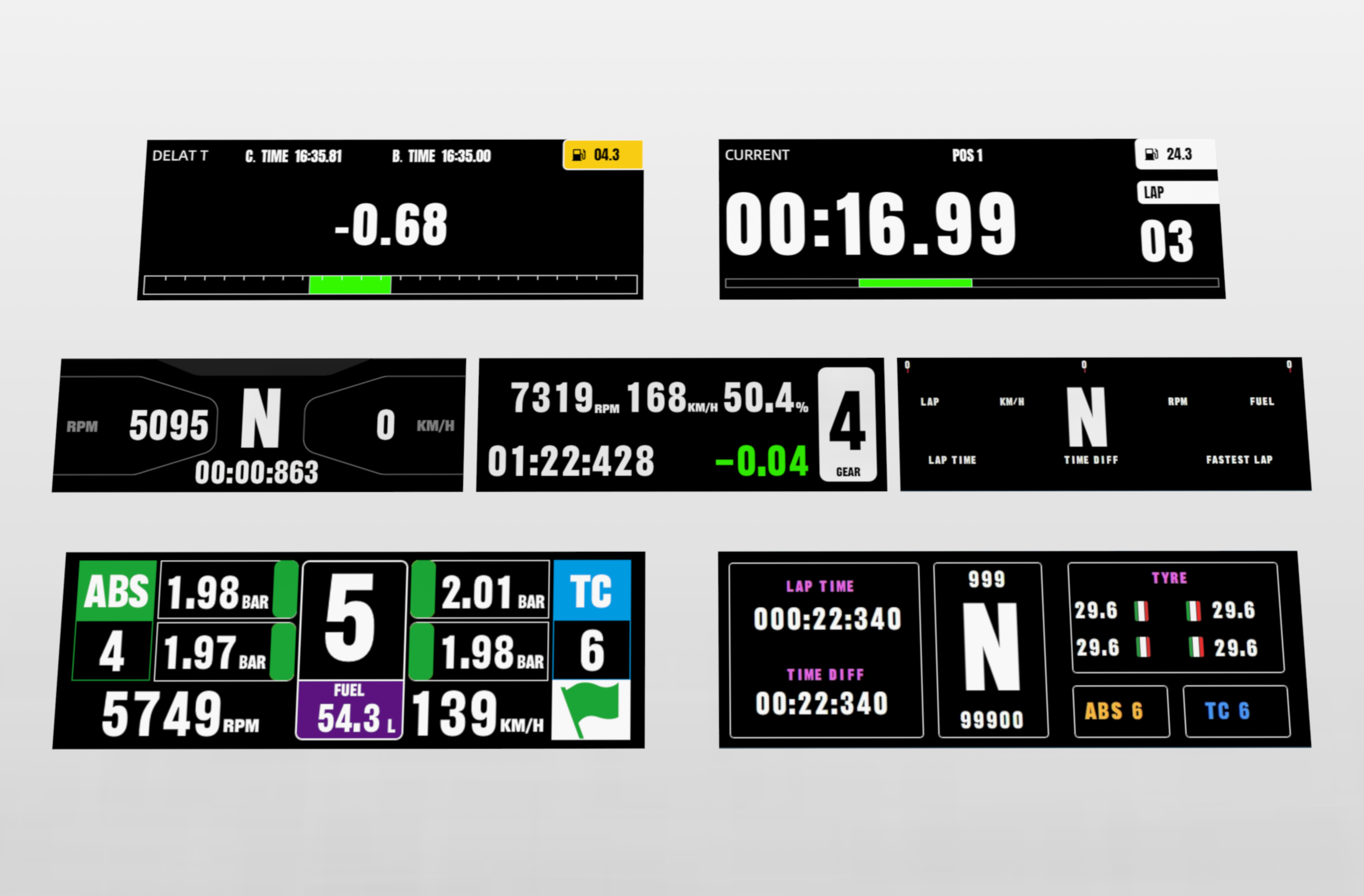 Personalización a todo color, compatible con control de retroalimentación de efectos de iluminación a través de CONSPIT Link 2.0 y SimHub